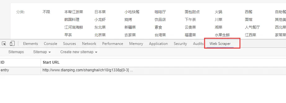 2.安装好Web Scraper插件后,打开Chrome浏览器的开发者工具,能看到Web Scraper选项代表安装成功。