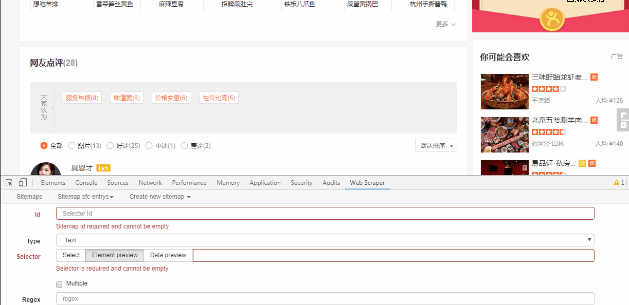 第三步常见抽取小店详细页信息的规则,比如抽取评论:
