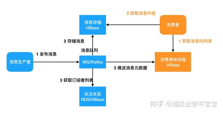 - 收信箱。假如有两亿用户,每个用户保留最新2000条推送消息。即便存储的是索引也是千亿的规模。收信箱一般的表结构为用户ID+消息序列 + 消息ID + 消息元数据,消息序列是一个递增的ID,需要存储一个偏移量表示上次读到的消息序列ID。用户读取最新消息 select * from inbox where 消息序列 > offset。