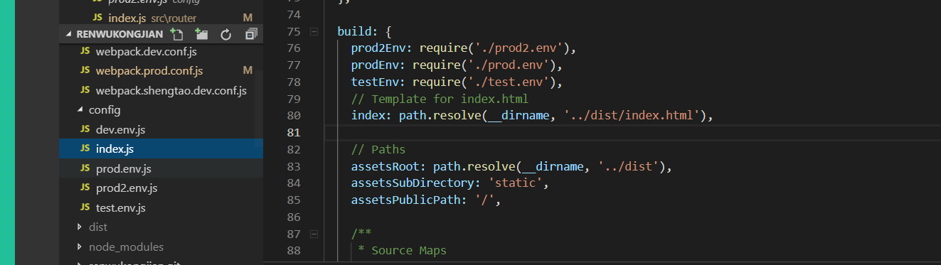 (3)接下来需要更改config/index.js,将新设置的环境变量,引入到index.js中,放在build模块下,如图: