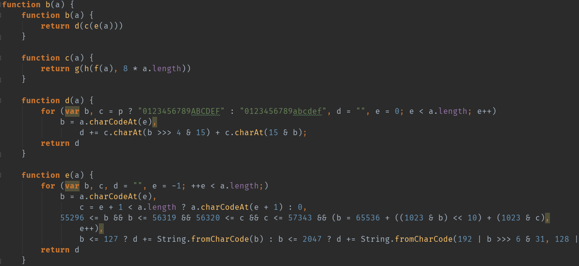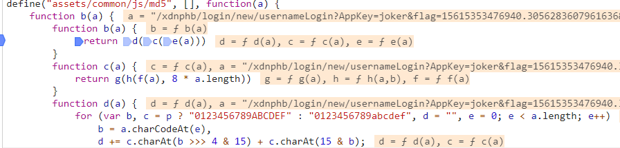 找到了密码加密的地方,看代码调用了两次 h 函数。 其中第二次调用的的参数是将第一次返回的结果加上 d.mdValue 的值! 我们点击进入 h 函数
