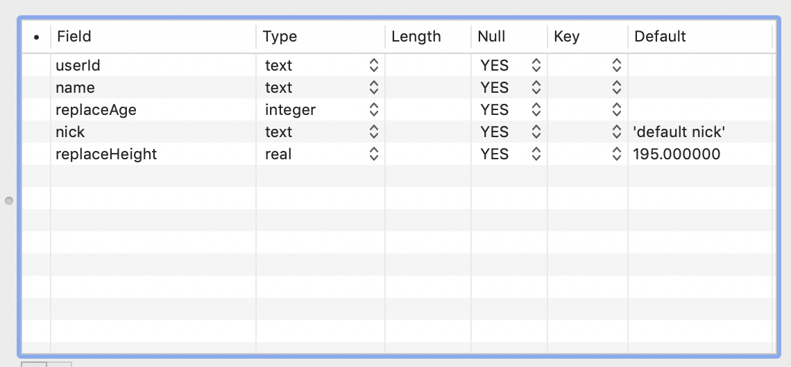 WCDB_SYNTHESIZE_COLUMN_DEFAULT(UserInfoModel, height, "replaceHeight", 195) // 使用replaceHeight作为数据库表字段名,并且默认值为195