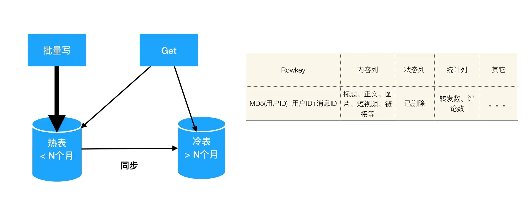 | MD5(用户ID)+用户ID+序列号 | 消息ID、作者、发布时间、关键字等 | 已读、未读 |