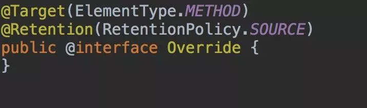 元注解是由java提供的基础注解,负责注解其它注解,如上图Override被@Target和@Retention修饰,它们用来说明解释其它注解,位于sdk/sources/android-25/java/lang/annotation路径下。