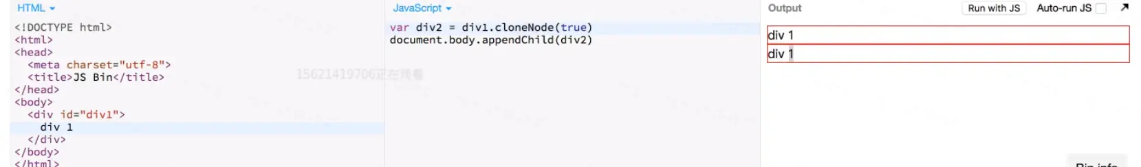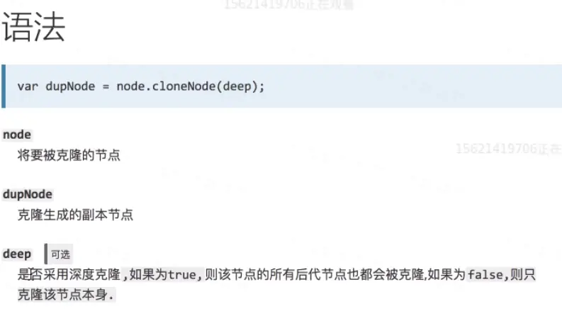 - clone接受参数值(true false)true深拷贝,flase浅拷贝