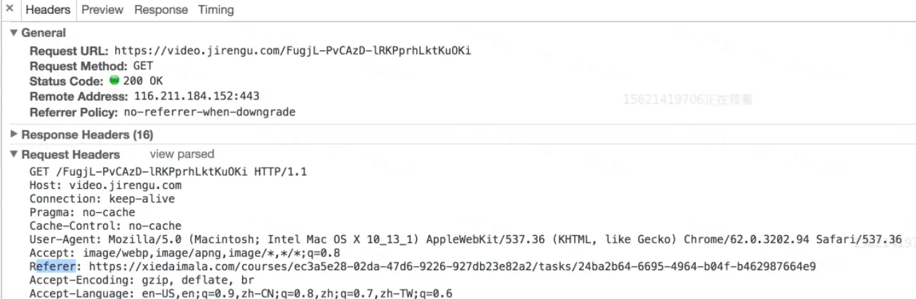 在浏览器的Network中可以查看,如果没有referrer单独访问域名可能会被服务器给拒绝。
