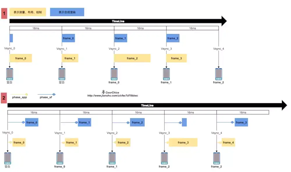通过对Android绘制机制的了解,我们知道造成应用卡顿的根源就在于16ms内不能完成绘制渲染合成过程,因为Android平台的硬件刷新率为60HZ,大概就是16ms刷新一次。如果没能在16ms内完成这个过程,就会使屏幕重复显示上一帧的内容,即造成了卡顿。在这16ms内,需要完成视图树的所有测量、布局、绘制渲染及合成。而我们的优化工作主要就是针对这个过程的。