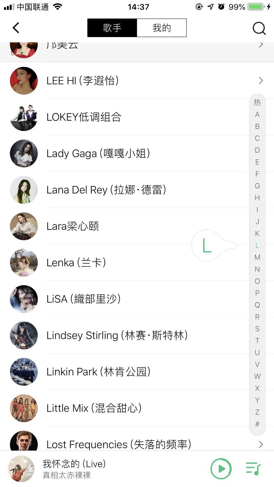 QQ音乐的TableView的索引栏的样式如下图: