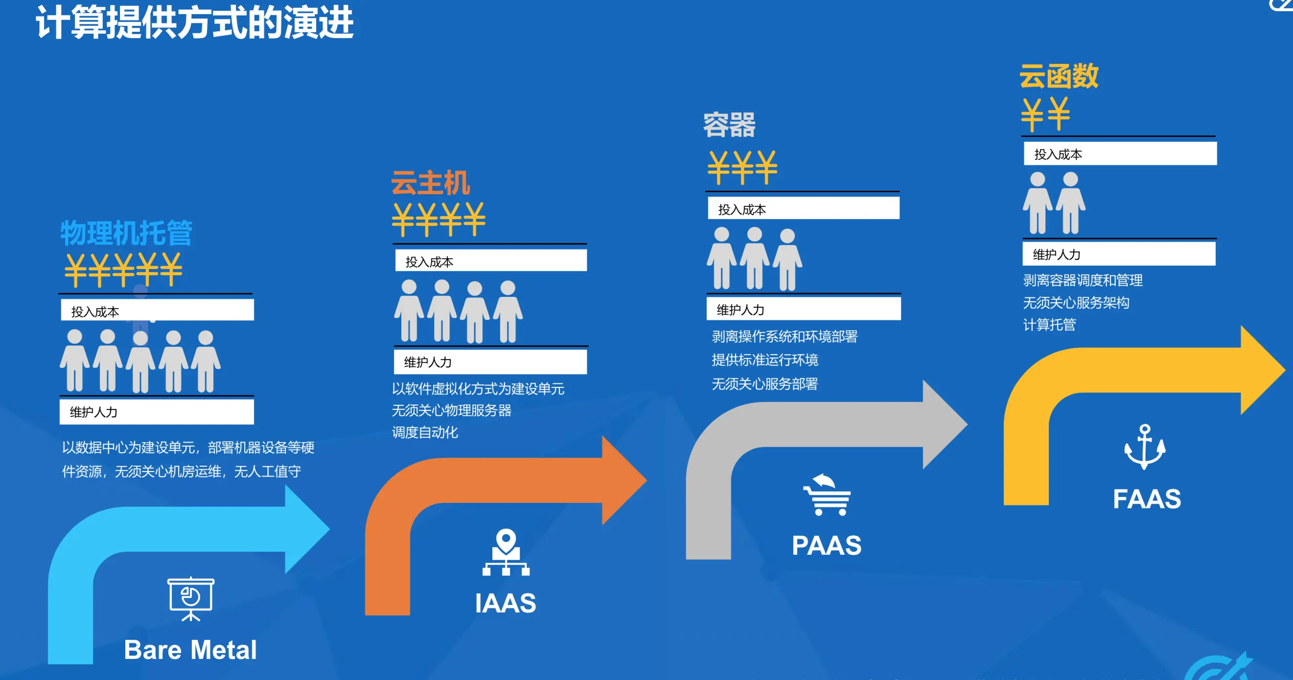 云计算的发展从IaaS,PaaS,SaaS,到最新的BaaS,FasS,在这个趋势中serverless(去服务器化)越来越明显。
