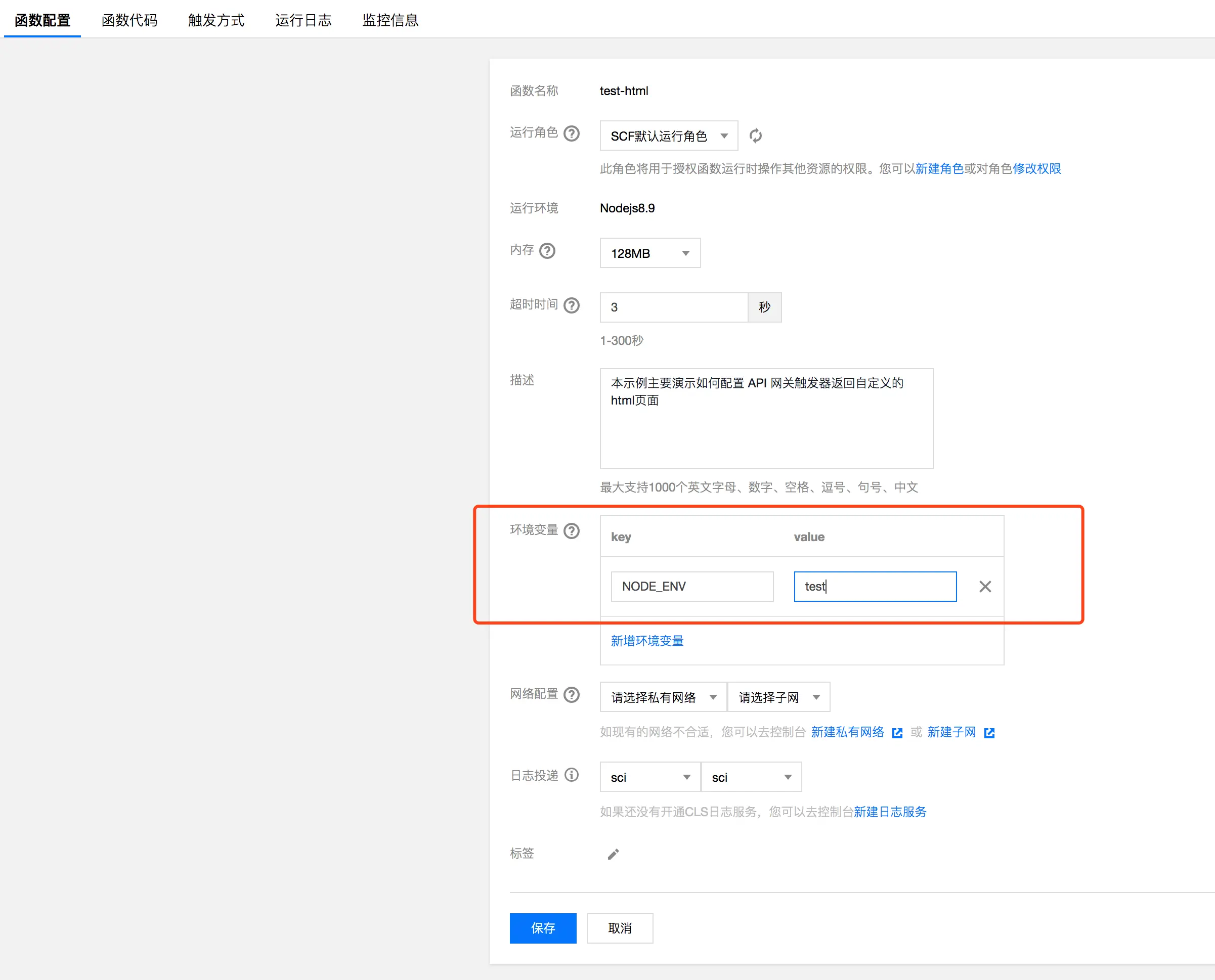 3)测试和线上环境通过函数配置设置不同的环境变量来区分。