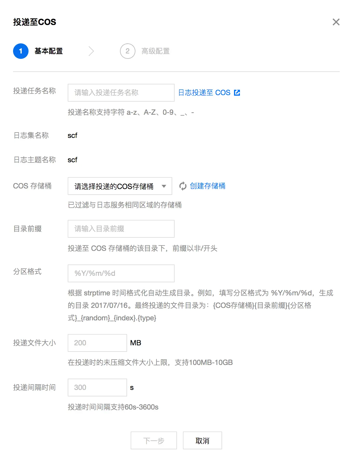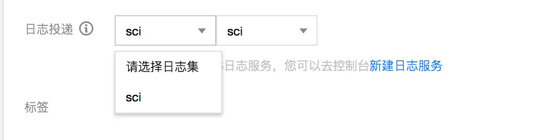 在函数配置界面下方,可以配置将日志投递到日志服务。新建日志服务