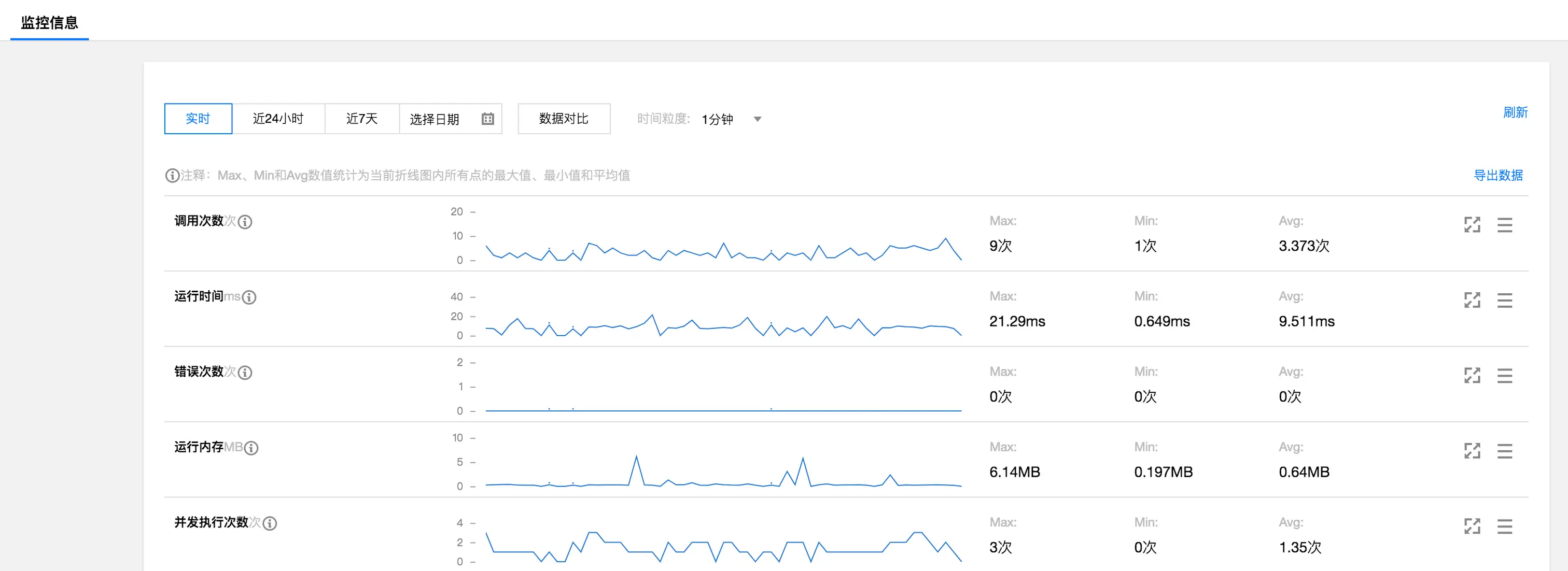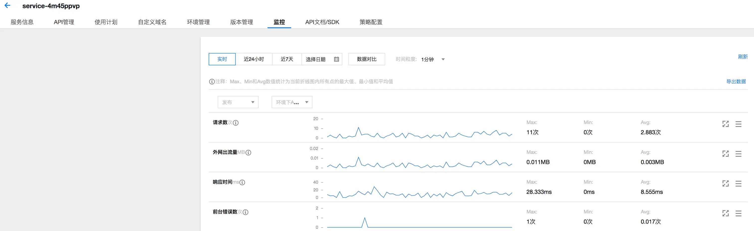 云函数和API网关有一些自带的监控,可以满足查看需求,如果需要更详细的视图配置和告警功能的话,可以使用云监控。