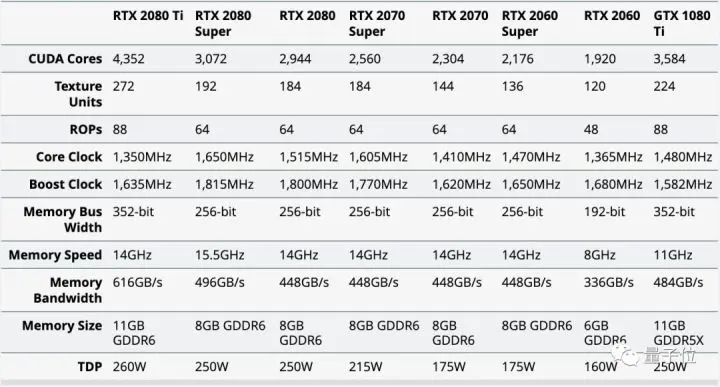 加了Super的RTX卡包含更多的CUDA核心、纹理单元、流处理器,更高的核心频率,当然功耗也更高。