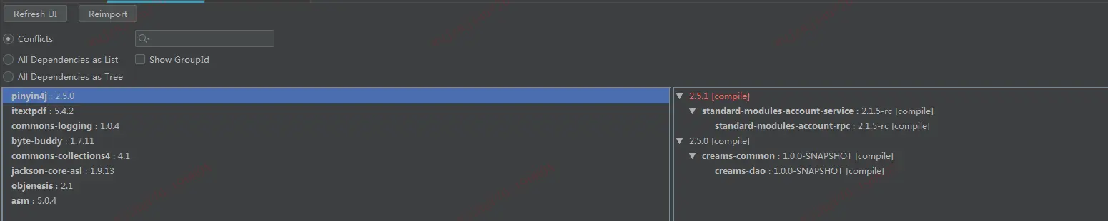 但是还有一些是更隐秘的冲突,就像本文中描述的依赖冲突,这时候我们需要分析异常信息,并定位冲突的原因和找到具体冲突的依赖引入,最后将它排除就可以了。