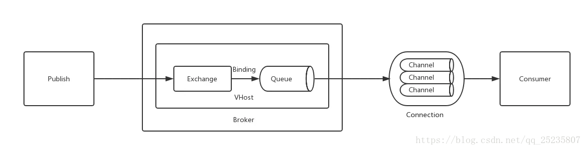 Channel:AMQP通过Channle来处理多连接,可以把通道理解成共享一个TCP连接的多个轻量化连接。