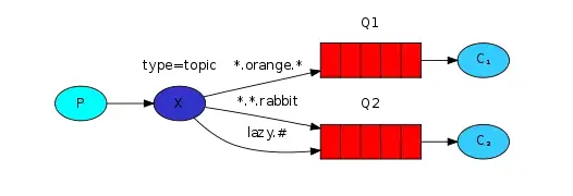 *和#这两个通配符来进行模糊匹配,其中*可以代替一个单词(必须有一个单词),#号可以代替任意个单词,但是需要注意的是topic交换机的路由键也不是可以随意设置的,必须是由.隔开的一系列的标识符组成。标识符一般和消息的某些特性相关,可以定义任意数量的标识符,上限为255个字节,当路由键可以模糊匹配上的时候就能将消息映射到绑定的队列中去。
