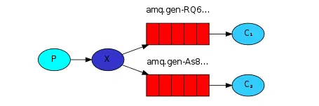- Funout:扇型交换机,将消息路由给绑定到它身上的所有队列,而不理会绑定的路由键,扇型用来交换机处理消息的广播路由。