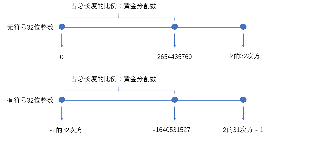 //黄金分割数 * 2的32次方 = 2654435769 - 这个是无符号32位整数的黄金分割数对应的那个值