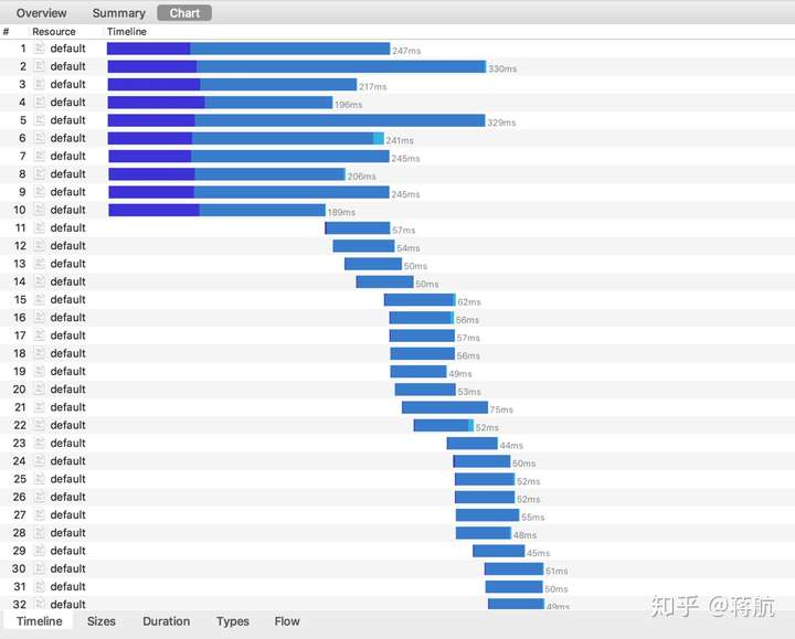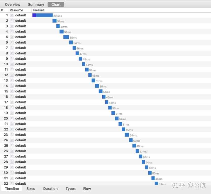 可以看到第一个请求时间为 302ms,其他请求时间基本都在 50ms 左右。基本就能确定,第一个请求对应的函数是冷启动,剩余 99 个请求,都是热启动,直接重复利用了第一个请求的运行环境。