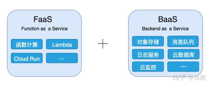 当然,有了体感还不够,我们还是需要一个更精确的定义。从技术角度来说,Serverless 就是 FaaS 和 BaaS 的结合。