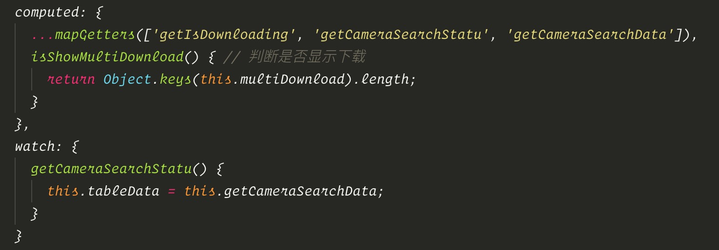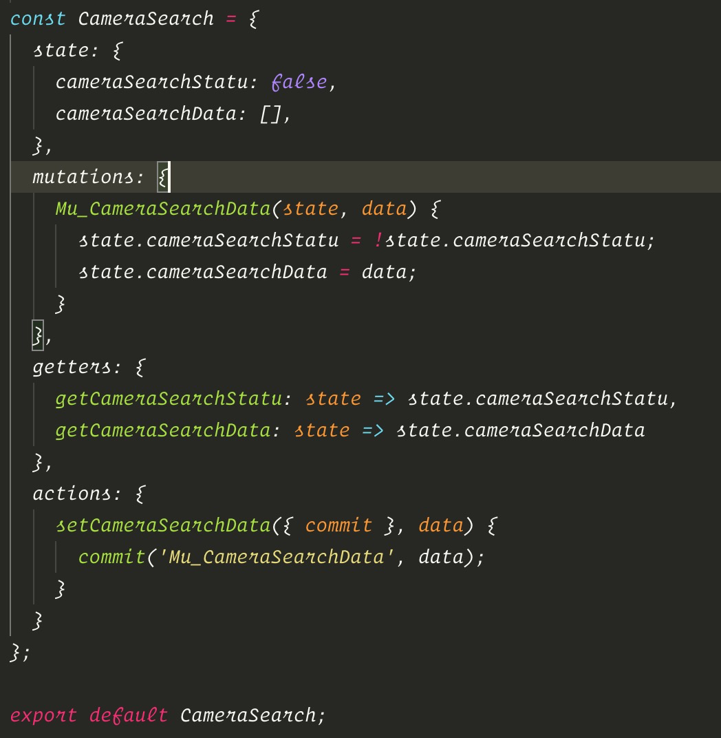 页面中,包含一个组件A,组件A中会通过一系列操作生成一组数据,这组数据需要通过调用store中的setCameraSearchData去触发store状态更新,A组件监听到store的变化去触发某个需要触发的事件。