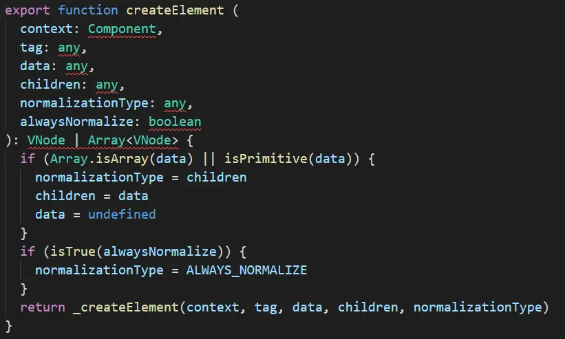 Vue.js 利用 createElement 方法创建 VNode,它定义在 src/core/vdom/create-elemenet.js 中: