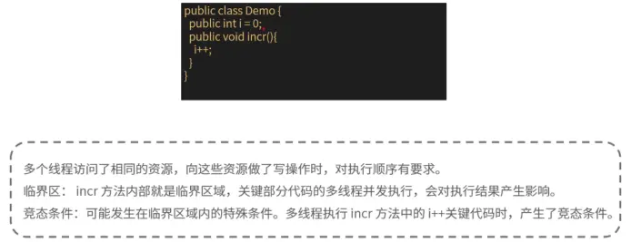 - 如果一段代码是线程安全的,则它不包含竞态条件。只有当多个线程更新共享资源时,才会发生竞态条件。