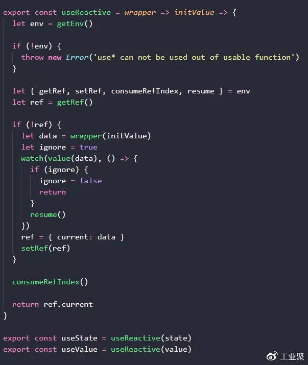 不过,额外引入 react-hooks,跟 vue-reactivity 并行,会显得很奇怪,应该用后者实现前者的机制。就是 re-run 时,重用 state/value,并且 state/value 的变化,会引起函数的 re-run。