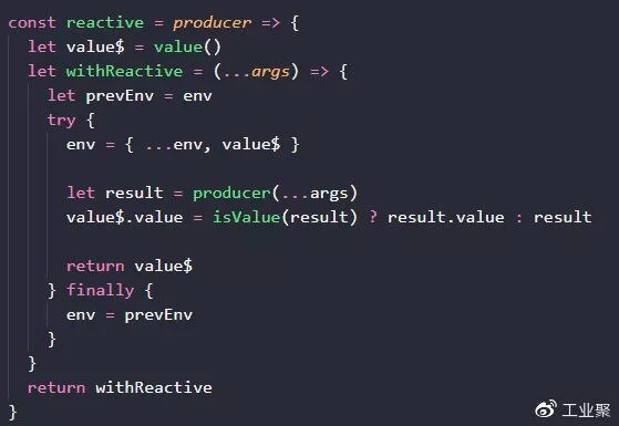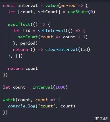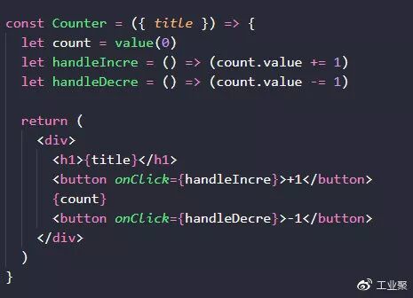 看这个代码,是不是觉得非常有趣?既像 vue 那样可以用 js 赋值操作,又像 react-hooks 那样的形式,还像 cycle.js 一样在组件内部可以操作 reactive value。