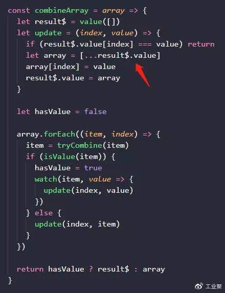 回顾一下我们的 combineArray 是如何更新的,它不是直接赋值,而是先浅拷贝,再赋值。