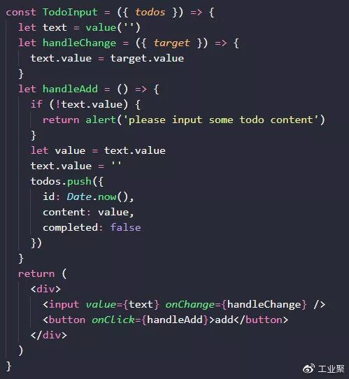 点击 add 按钮时,构造一个 todo,直接 push 到 todos 里即可。