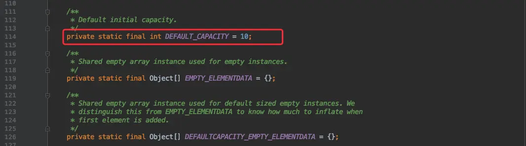 但其实并不是在初始化的时候就创建了 DEFAULT_CAPACITY = 10 的数组。