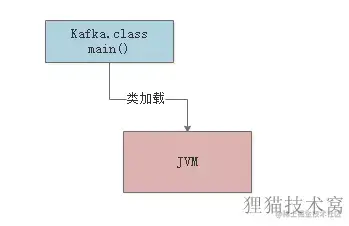 那么一旦你的JVM进程启动之后,它一定会先把你的这个类(Kafka.cass)加载到内存里,然后从“main()”方法的入口代码开始执行。