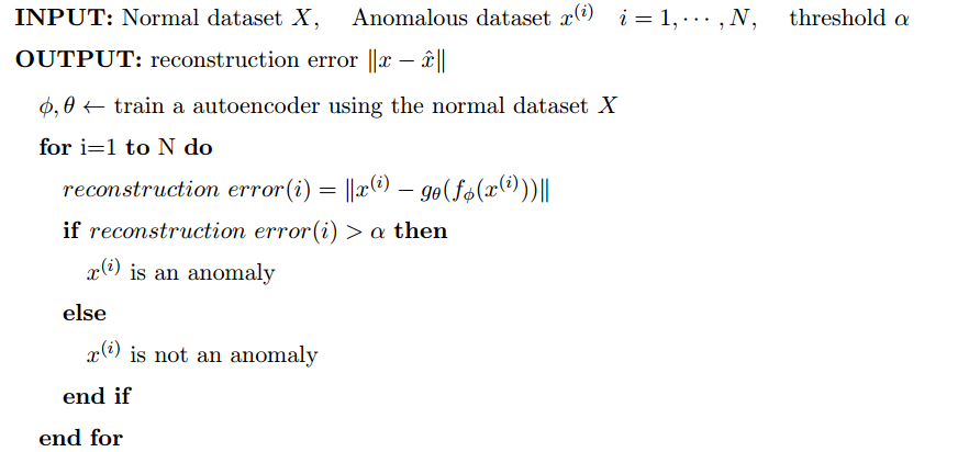 to be anomalies.Only data with normal instances are used to train the autoencoder