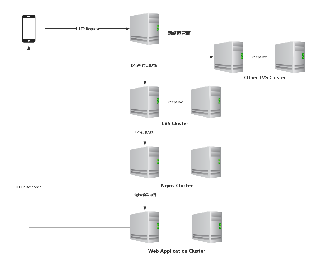 目前关于网站架构一般比较合理流行的架构方案:Web前端采用Nginx/HAProxy+Keepalived作负载均衡器;后端采用MySQL数据库一主多从和读写分离,采用LVS+Keepalived的架构。当然要根据项目具体需求制定方案。 下面说说各自的特点和适用场合。