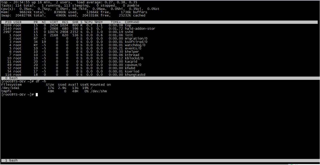 [root@TS-DEV ~]# screen -x这个命令会将你朋友的终端Attach到你的Screen会话上,并且你的终端不会被Detach。这样你就可以和朋友共享同一个会话了,如果你们当前又处于同一个窗口,那就相当于坐在同一个显示器前面,你的操作会同步演示给你朋友,你朋友的操作也会同步演示给你。当然,如果你们切换到这个会话的不同窗口中去,那还是可以分别进行不同的操作的。