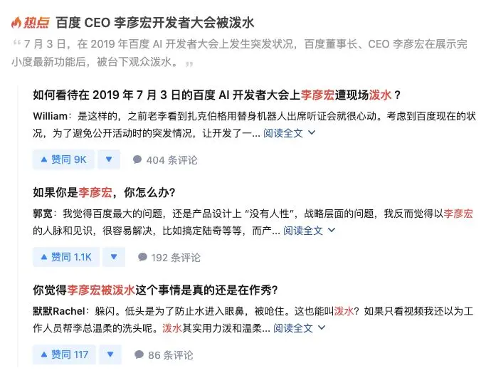 通常说遇见被别人泼水甚至是伤害的时间发生,舆论通常都会指着动手这方,偏袒事件受害者。但这次事件发生后,莆田系、魏哲西、广告等关键词被重复多次提及,同时查看泼水主微博下的用户评论、以级知乎问答中的用户讨论,并没有全部一片倒支持李彦宏。有部分用户甚至是支持这类做法。