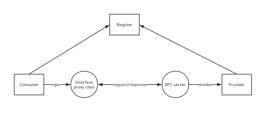那么我们是如何把在另外一个服务器上的服务拿到我们本地来的那?有人看上面的 ProxyFactory 可能就已经猜出来了,使用的是动态代理,我们在本地获取到了接口的代理类,在 invoke 方法中将参数传给对应的服务,服务端在接收到数据后,使用反射调用对应的实现类,完成处理后将结果返回给调用端。