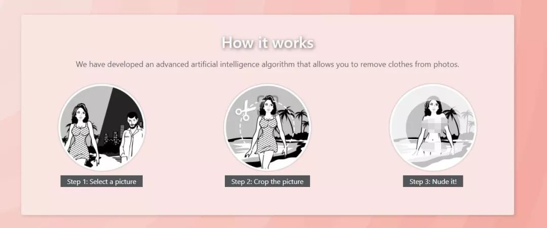 只需要上传一张女性照片,该应用就能借助神经网络技术,自动移除女性身上的衣服并“填补”出裸体。