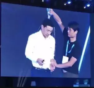 突然有观众冲上台向其头部倒了一瓶水