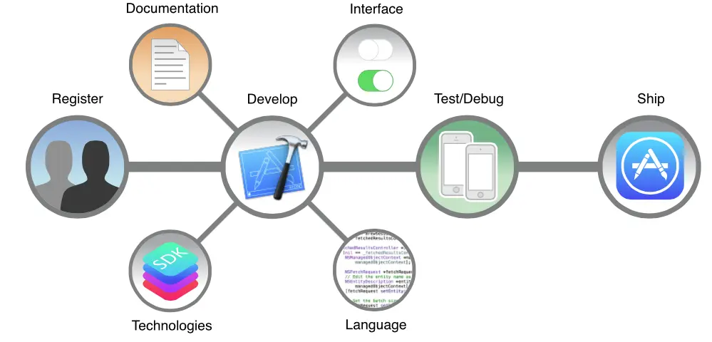 《App Distribution Guide 》(应用程序分发指南)中的“Managing Accounts”(管理帐户)这一章节会带您逐步完成注册为Apple开发者的过程。