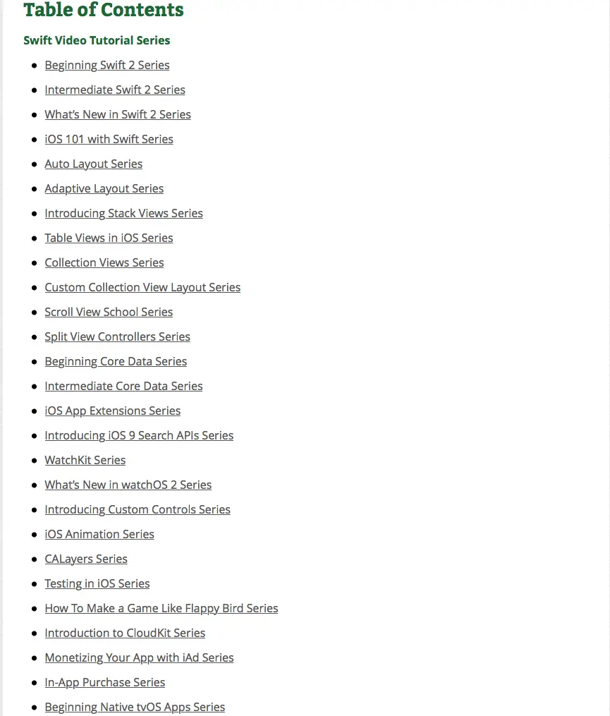 发布这篇文章到2015.12.1,其中的书籍版本号都换了一轮了,时间过的真快。。最近这个阶段,我只在Raywenderlich网站上看视频,看他们家的书籍,其他的资源,也都不关注了。所以文章中某个资源有变化更新的,请给我留言哦~