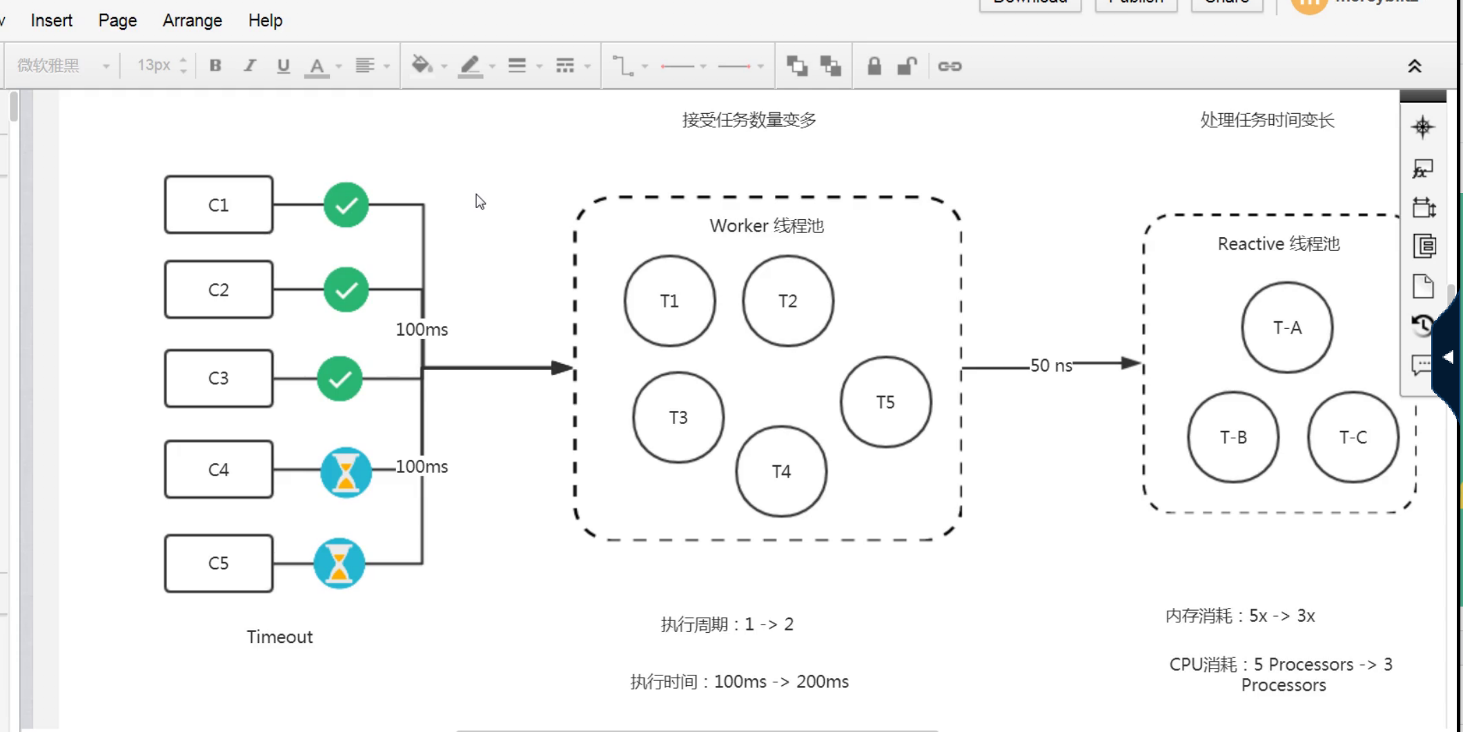 任务型的,少量线程,多个任务长时间运作,达到伸缩性。