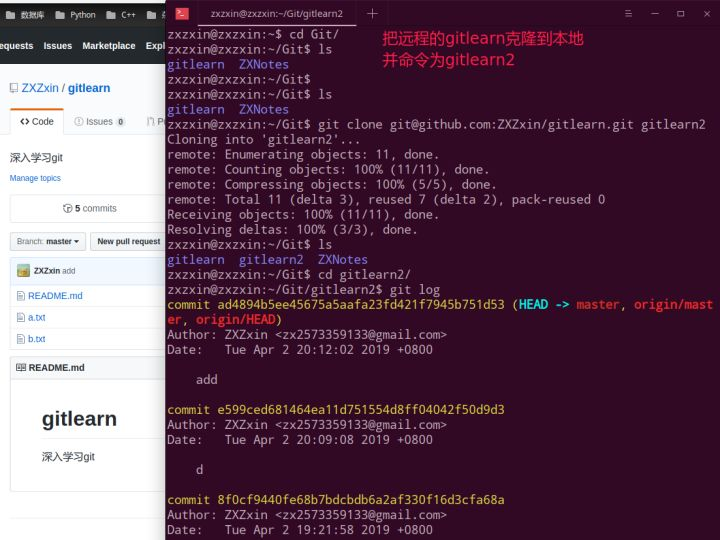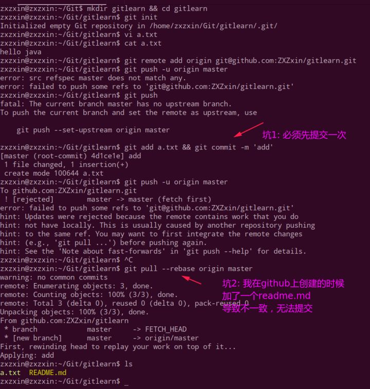 git remote add origin git@github.com:ZXZxin/gitlearn.git;git push -u origin master;