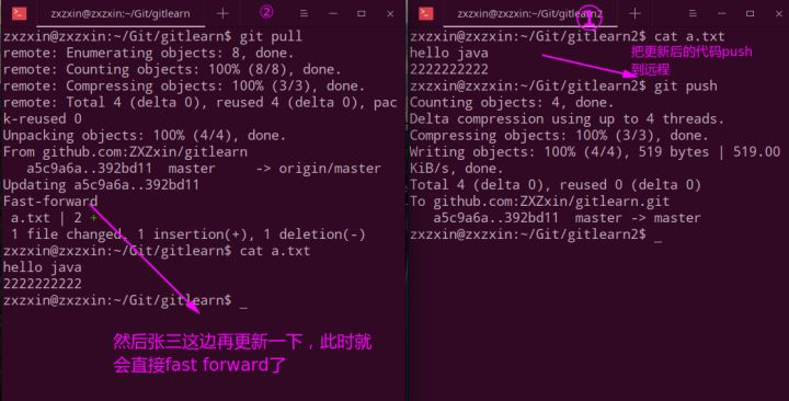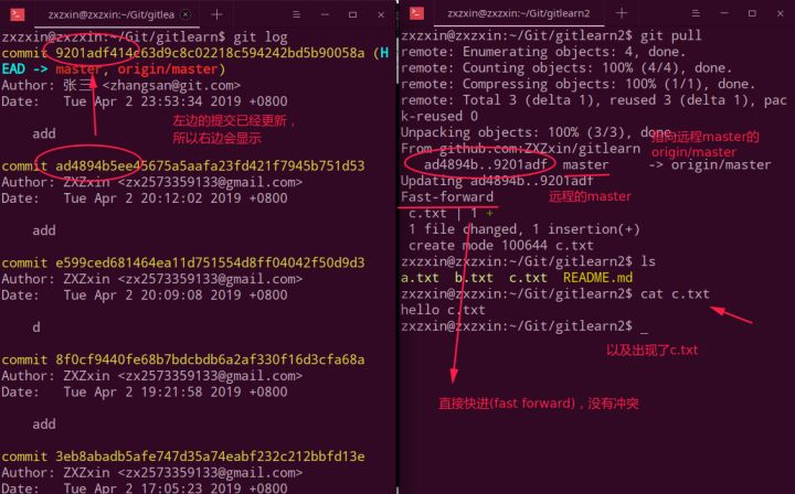 最后在张三也进行git pull即可。
