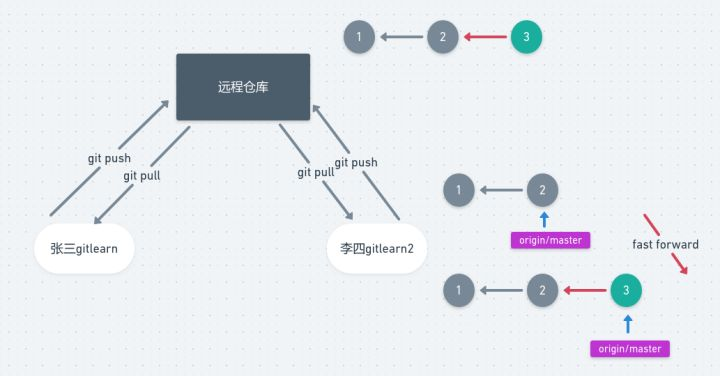 gitlearn,李四是直接从张三的远程仓库git clone下来的; - 然后我们再将张三的