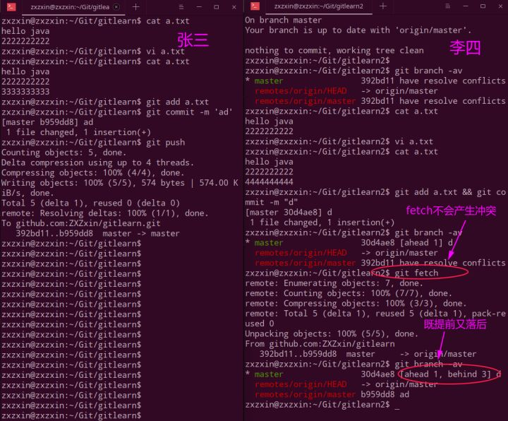 此时李四要先git pull。