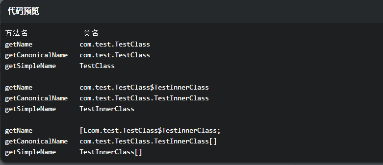 [Lcom.test.TestClass$TestInnerClass;值得说明一下。