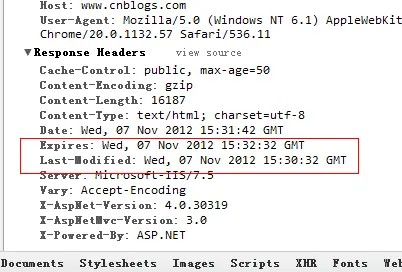 从Last-Modified到Expires,我们可以看到,博客园的缓存时间是2分钟,而且我还能看到当前的服务器时间Date,如果我再次