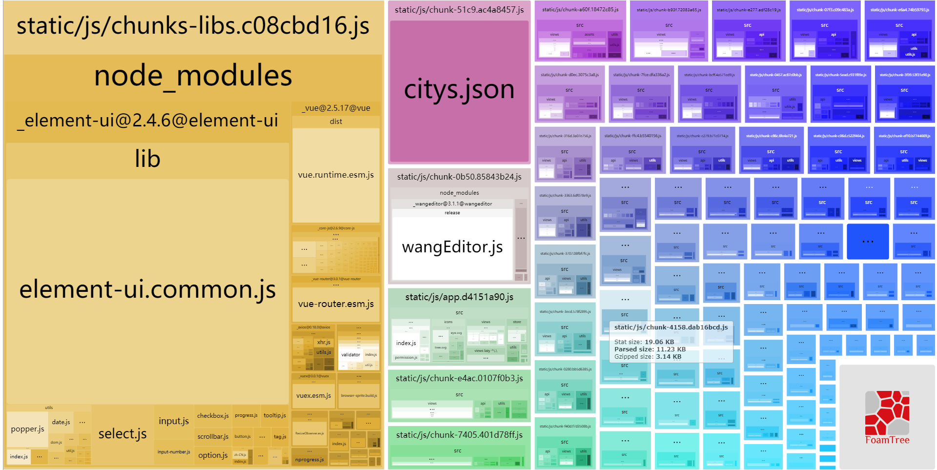 ]在插件配置项中引入并通过cnpm run build --report来生成可视化分析图,效果图如下: